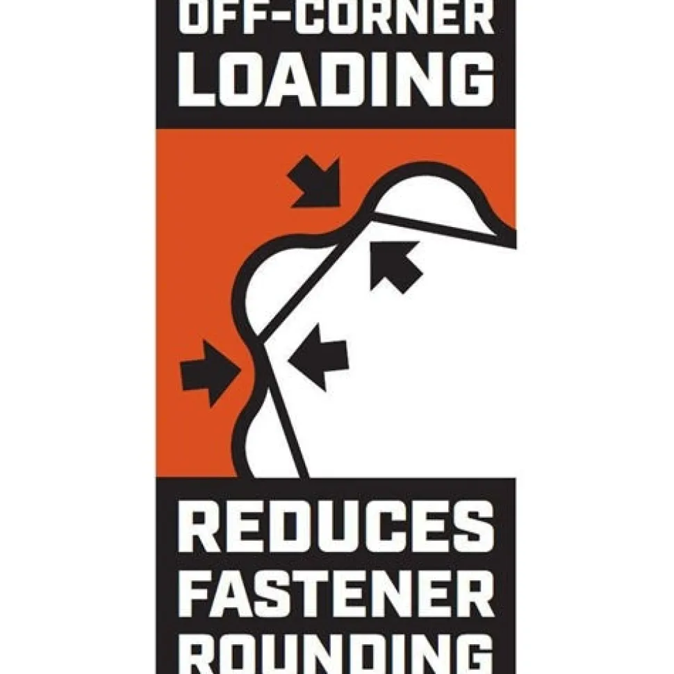 - Off-corner loading technology on the box-end reduces fastener rounding.