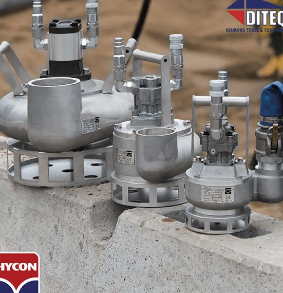 The HYCON submersible pump is a VORTEX pump. VORTEX pumps are designed especially for dirty water with even very large solids. The impeller at top sets the water in a circular movement and by centrifugal force a center of air shaped like a cone will occur. This way there is very little contact between the water and the impeller, and wear is greatly reduced compared to other types of pumps. In other types of pumps, the water is pumped directly by the impeller, which is therefore worn much faster. Pumps of the special VORTEX design have a longer lifetime and can pump larger solids.