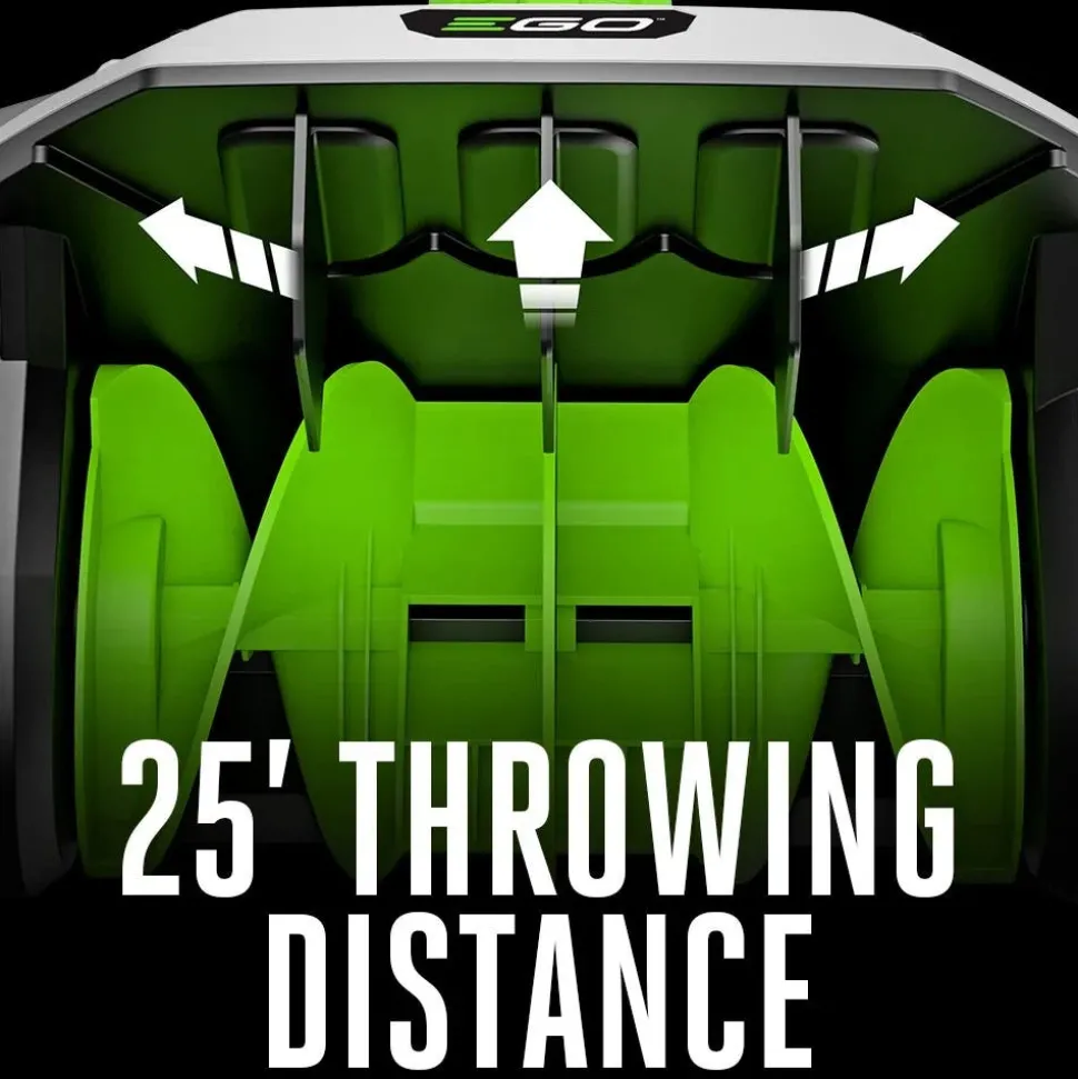 - Throws snow up to 25 feet with 60-degree directional control dial