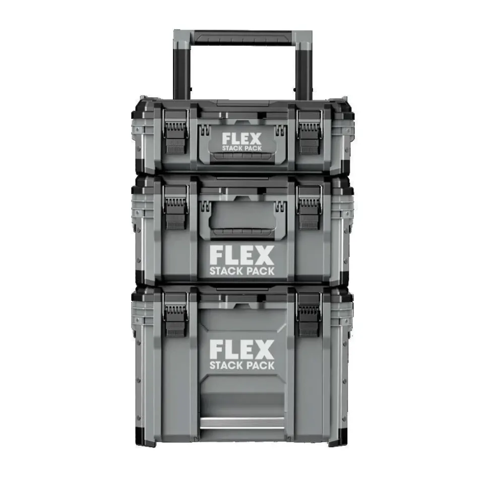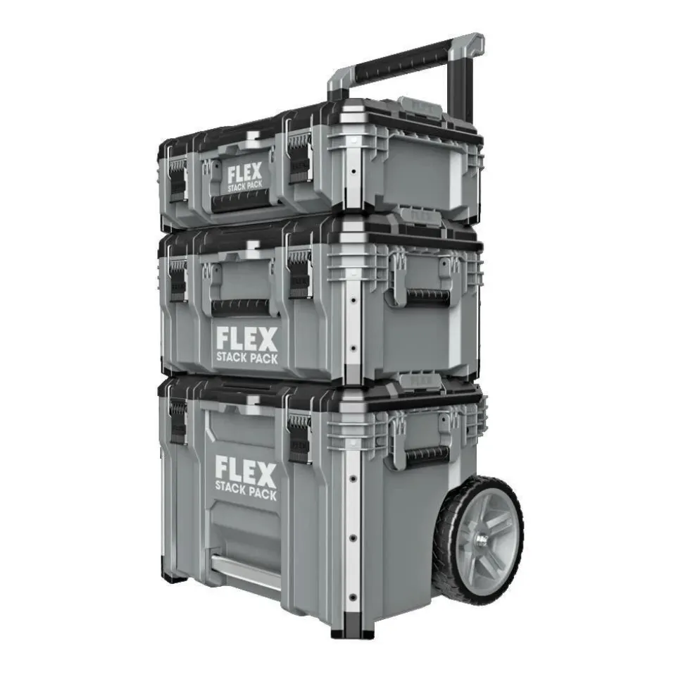 Pack everything you need for a day on the job with the FLEX STACK PACK 3-Pc. Storage System. Quick-connect interlocking attachment points offer fast and effortless connectivity to customize your layout with any piece in the STACK PACK storage system. IP65 all-weather protection shields your tools and accessories from the elements, and an impact-resistant polypropylene body with aluminum reinforced corners offers protection from the toughest jobsite conditions. Complete with the STACK PACK Rolling Tool Box, Medium Tool Box, and Suitcase Tool Box, you’ll have enough storage to bring the workshop with you to and from the jobsite.
