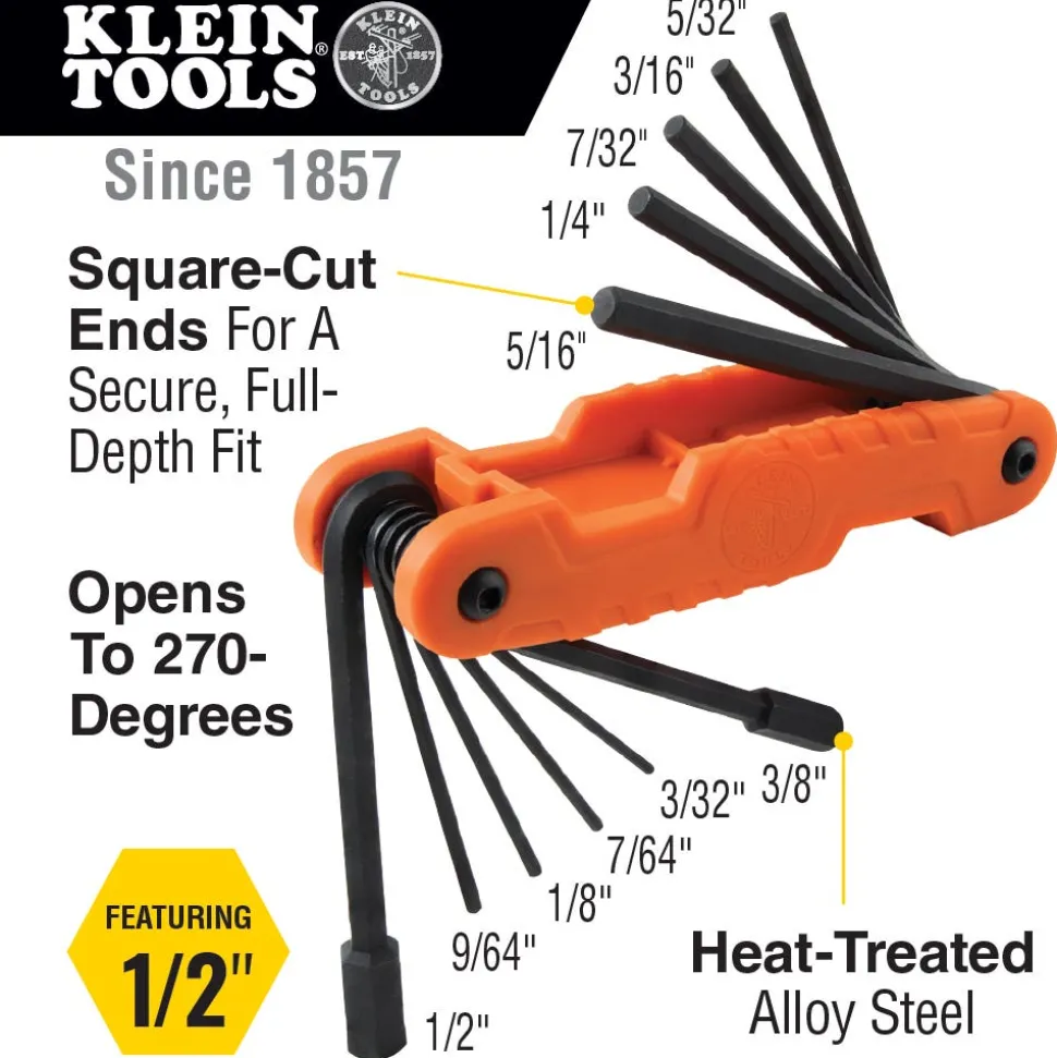 - Key sizes: 1/2, 3/8, 5/16, 1/4, 7/32, 3/16, 5/32, 9/64, 1/8, 7/64, and 3/32-Inch