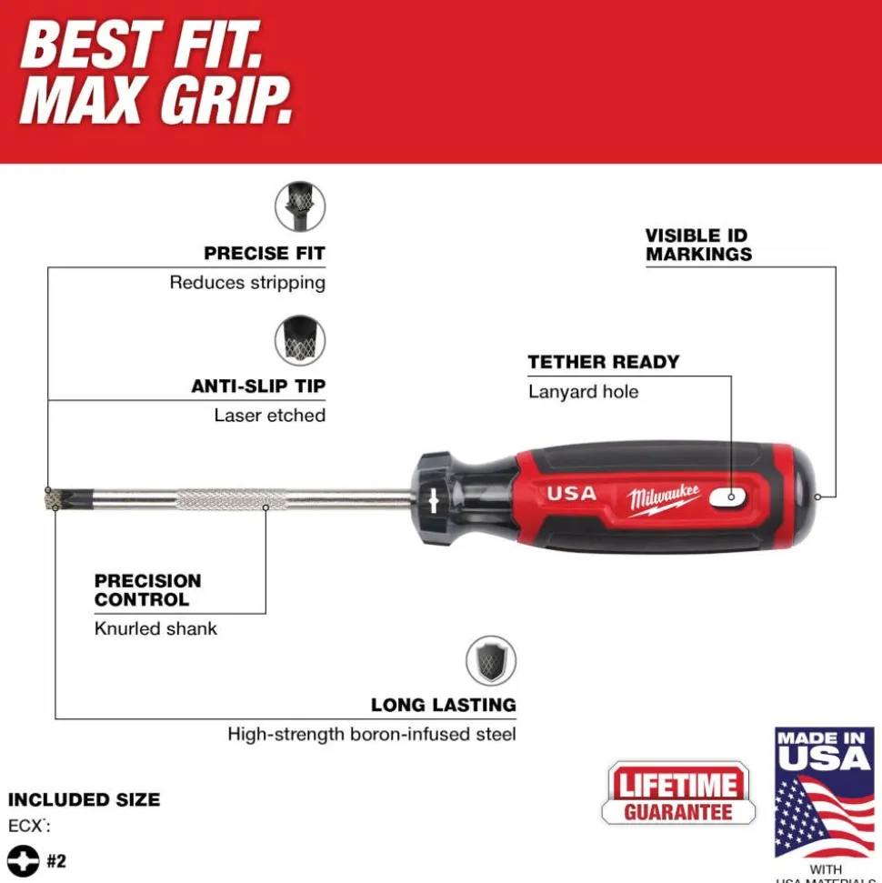 | Screwdrivers Included | #2 ECX 4″ Cushion Grip Screwdriver USA |
