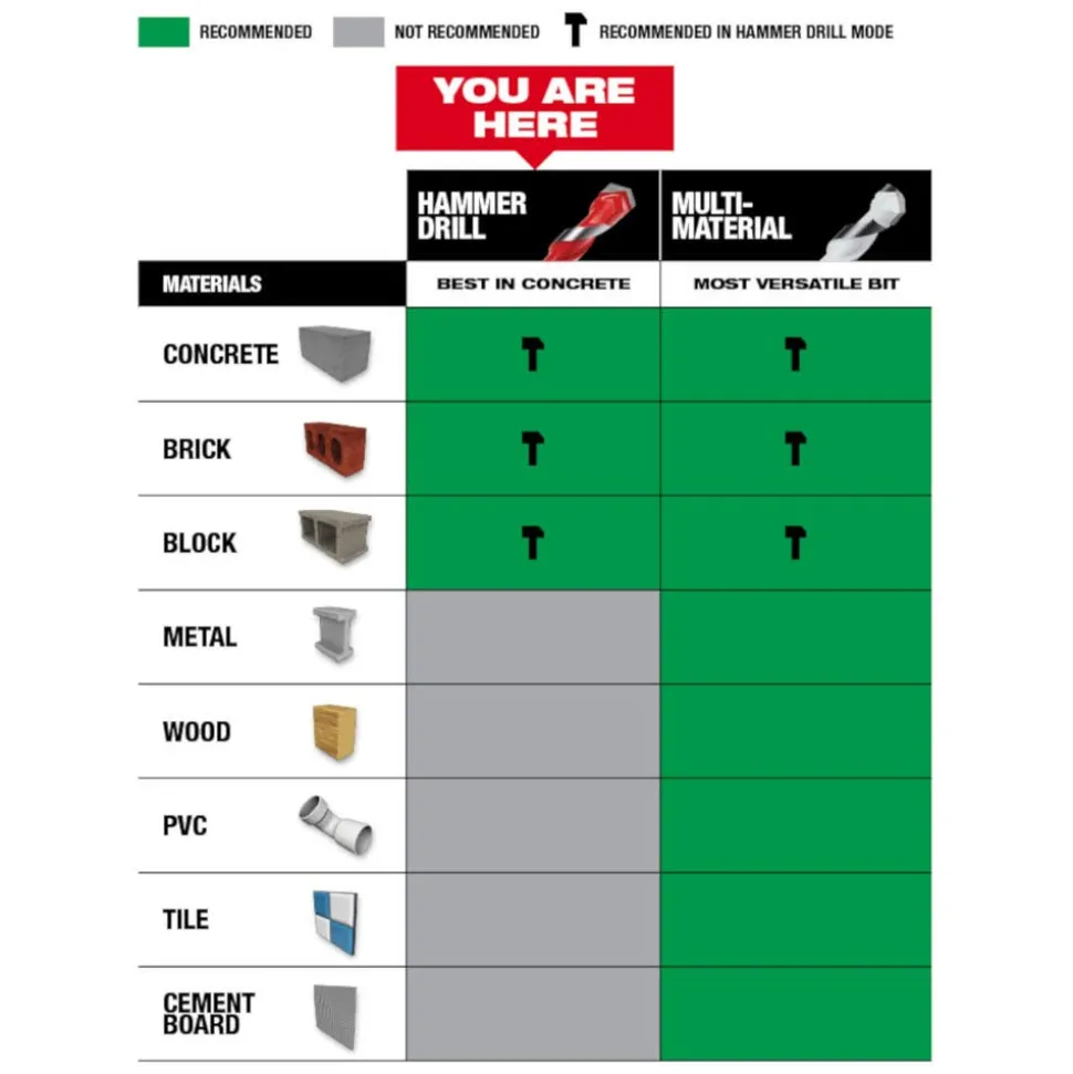 - Wide flute design for fast, efficient dust removal and more holes per charge