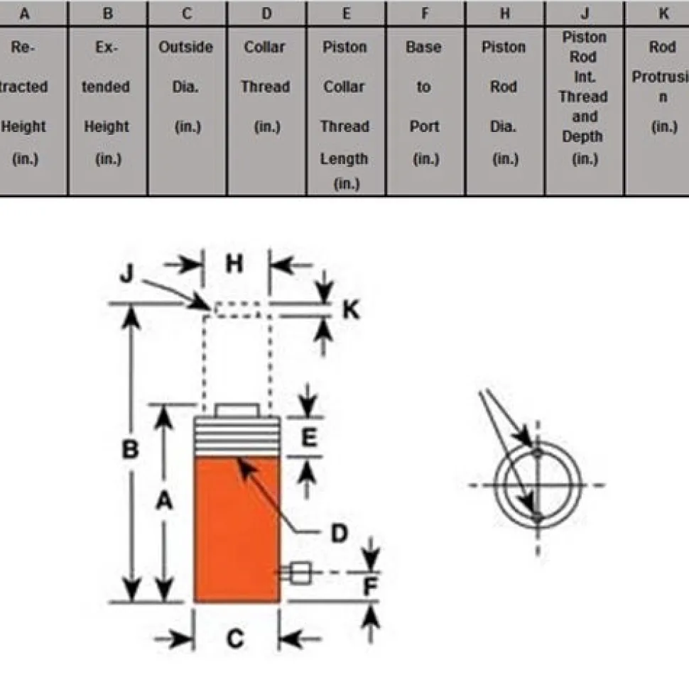 - Base mounting holes standard on 5 through 55 ton cylinders; optional on 75 and 100 ton cylinders.