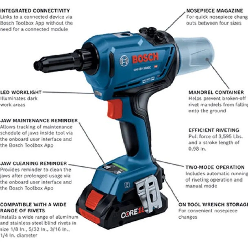- Covered by Bosch’s Limited 18V Warranty