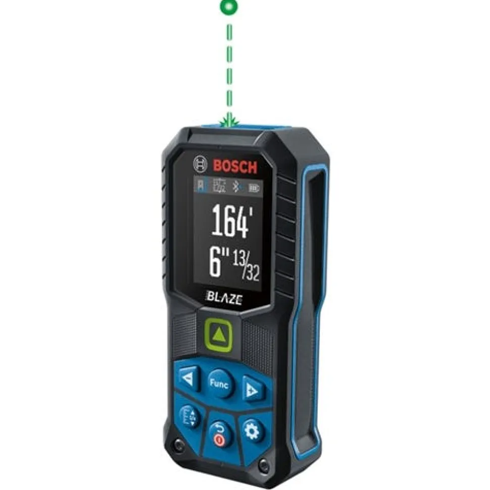 The Bosch BLAZE GLM165-27CGL uses green-beam technology; which generates a point/dot up to 4X brighter than standard red beams. Features an inclinometer; which shows the tilt angle up to 360° for easy angle and indirect measurements. The digital laser measure also offers Bluetooth functionality; so users can digitally transfer measurements to a smartphone or tablet through the free MeasureOn app.