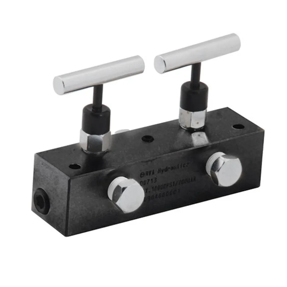 BVA MANIFOLD BLOCK, 2 NEEDLE VALVE, OIL PORT 3/8″-18NPTF, 6″ LONG, 10,000 PSI (700 BAR) MFC2