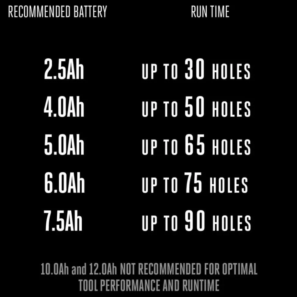 - Bores up to 50 holes on a single charge with included 56V 4.0Ah ARC Lithium battery