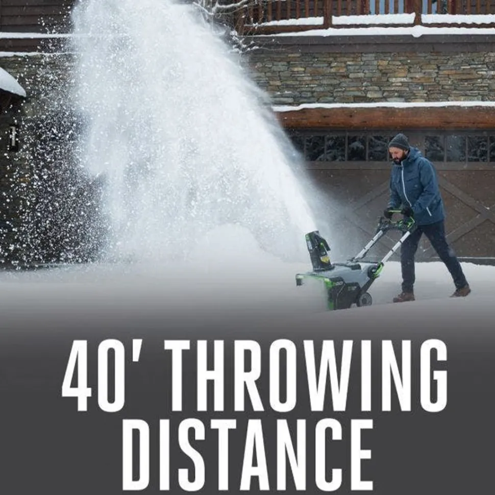The new EGO POWER+ Snow Blower delivers the power and performance of gas without the noise, fuss and fumes. Featuring Peak Power technology, it combines the power of any two EGO 56V ARC Lithium batteries for the power to clear heavy, wet snow with a throwing distance up to 40 ft.