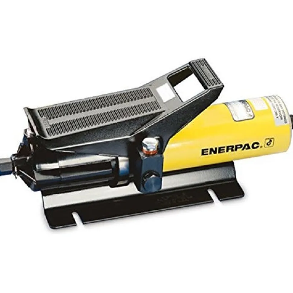 The Enerpac PA-133 single-speed hydraulic air pump is for lifting; bolting; or applying pressure with a hydraulic cylinder (sold separately) in plant maintenance; fabrication; production; bolting; vehicle repair; and other applications where compressed air is the preferred power source. It has a three-way control valve for advancing; releasing; or holding a single-acting cylinder. The pump is controlled by a treadle that can be operated by hand or by foot.