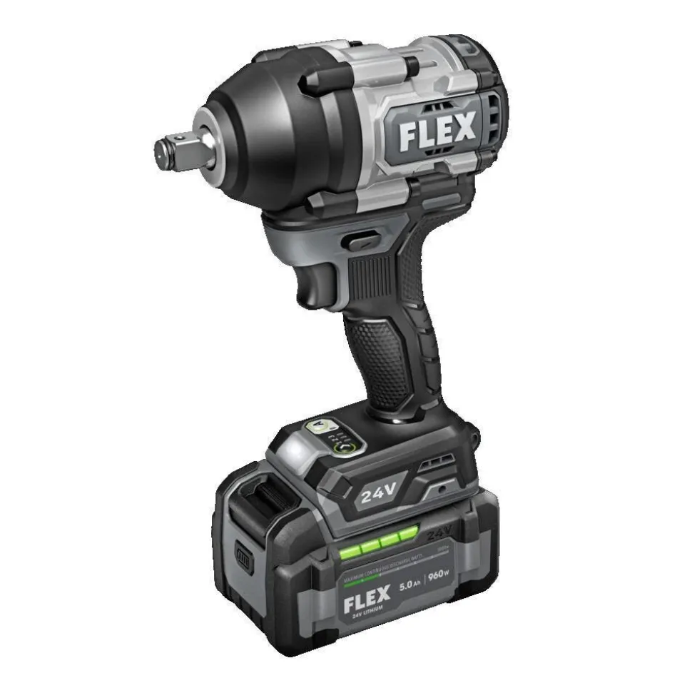 The FLEX 1/2” Mid-Torque Impact Wrench packs big power into a compact design for a lightweight, durable tool built to conquer hard-to-reach spaces. It delivers 600 foot-pounds of fastening torque and 750 foot-pounds of nut-busting torque for demanding jobs. Bolt Auto Stop Mode prevents over-tightening, breaking, or stripping of nuts and bolts while Bolt Removal Mode stops the tool when it senses the nut or bolt is loosened. Vibration suppression isolates the ½-inch impact wrench and user from vibration for more comfortable extended use, and three speed modes plus a variable speed trigger allow easy control of RPMs to adapt to different materials. This cordless impact wrench delivers FLEX Advantage of unmatched battery power, runtime, and fast charging. The impact wrench set includes the impact wrench, a 2.5Ah lithium battery, and 160W Fast Charger.