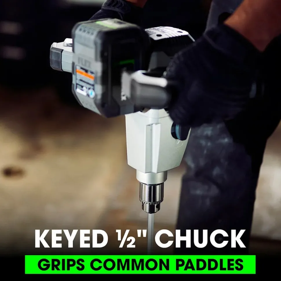 The FLEX Mud Mixer delivers the power, comfort, and control to prep any material for the job. The ergonomic dual-handle design enhances your stability and control. Two mechanical gear speeds help you power through even the toughest mixes with ease. Additionally, three electronic speed modes helps you dial in the speed for total control of every mix. Fits all of common paddles using this mixer’s secure, 1/2″ keyed chuck. And maximize your FLEX Advantage with FLEX battery cross-compatibility to deliver the same unrivaled power, runtime, and fast charging speed as your other FLEX power tools. (Battery sold separately.) All this comes with the dependability of a 5-year warranty.
