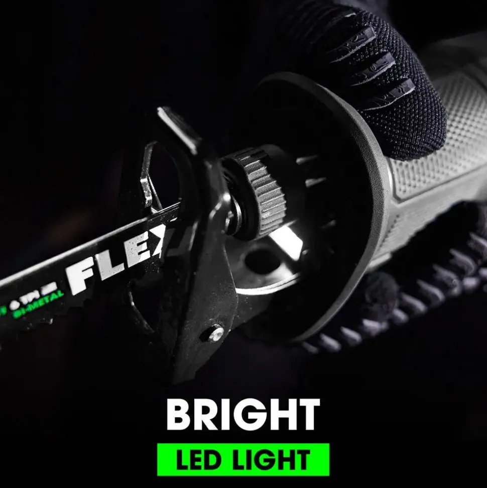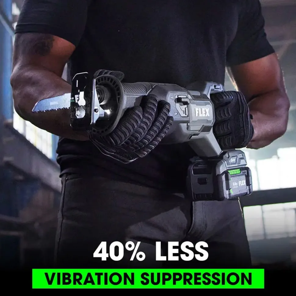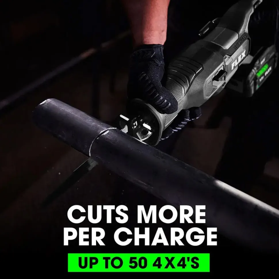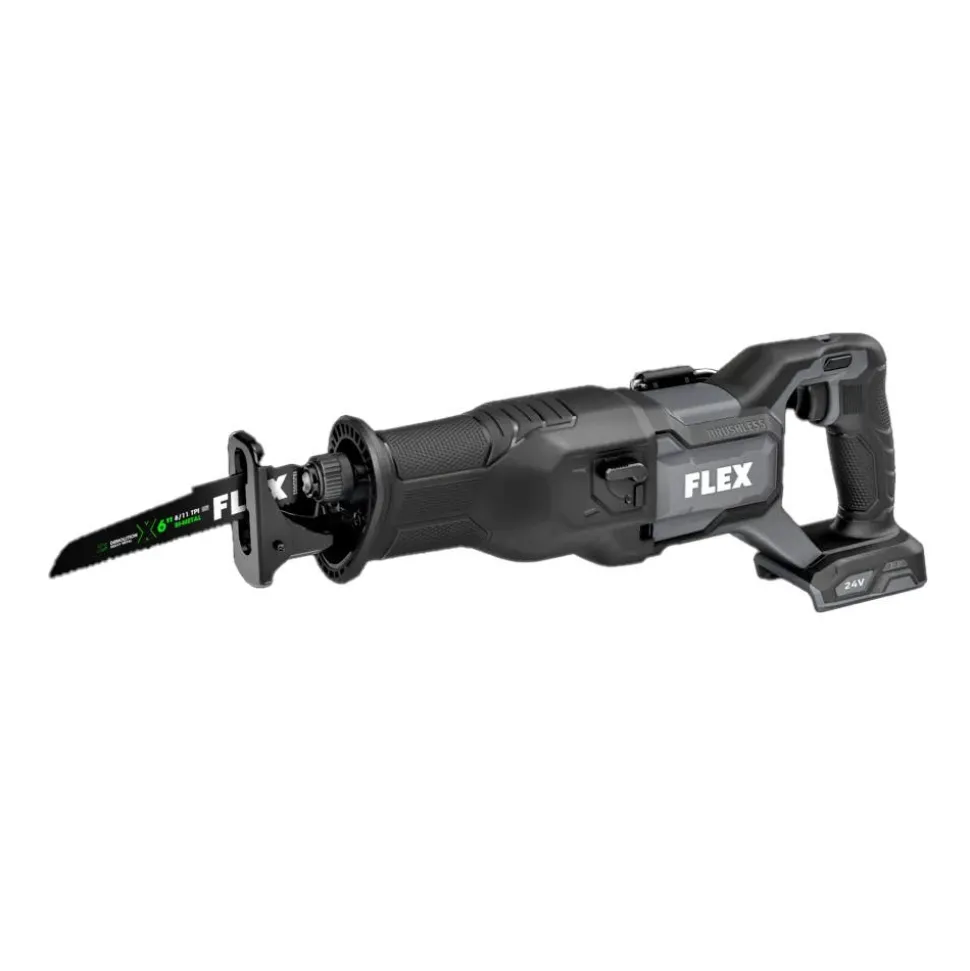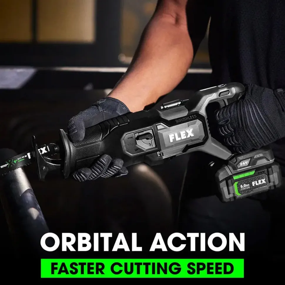 No demo is too tough for the FLEX 24V Reciprocating Saw. This saw features fast, orbital cutting action and delivers more cuts per charge. Vibration suppression reduces fatigue. Switch blades on-the-fly with quick and easy, keyless blade eject. Built-in LED lighting illuminates your site. All this comes with the FLEX Advantage of unmatched 24V battery power, runtime, and faster charging.