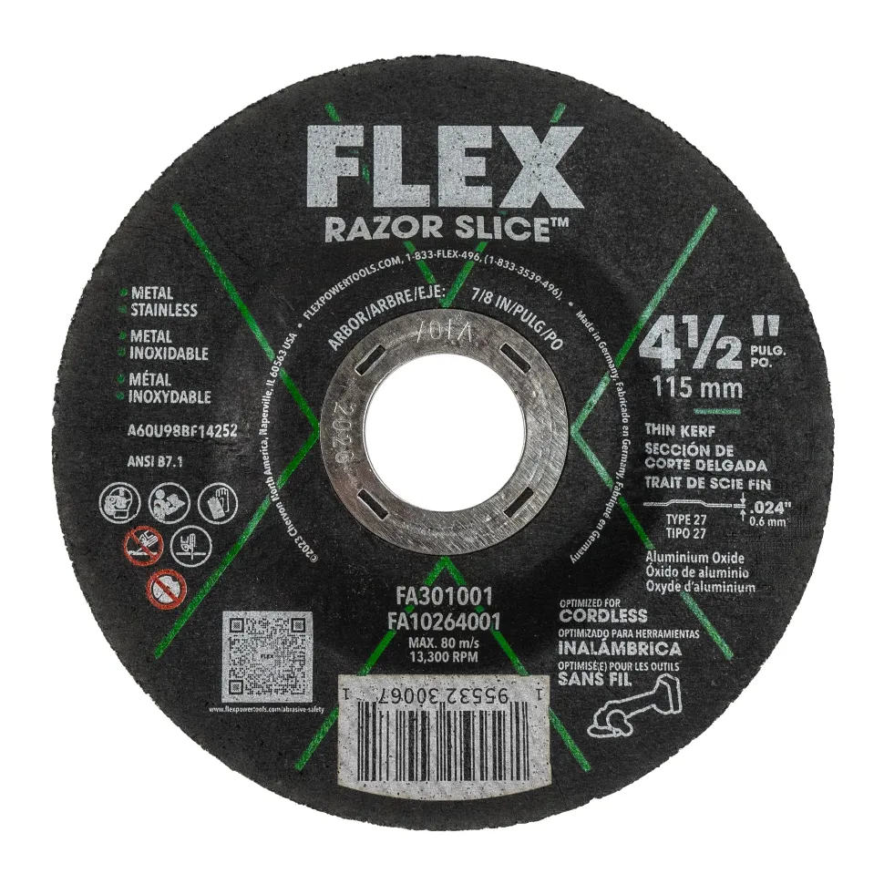 - (1) Razor Slice™ 4.5″ x 0.024″ x 7/8″ Ultra-thin Cut-Off Disc Type 27 [FA301001]