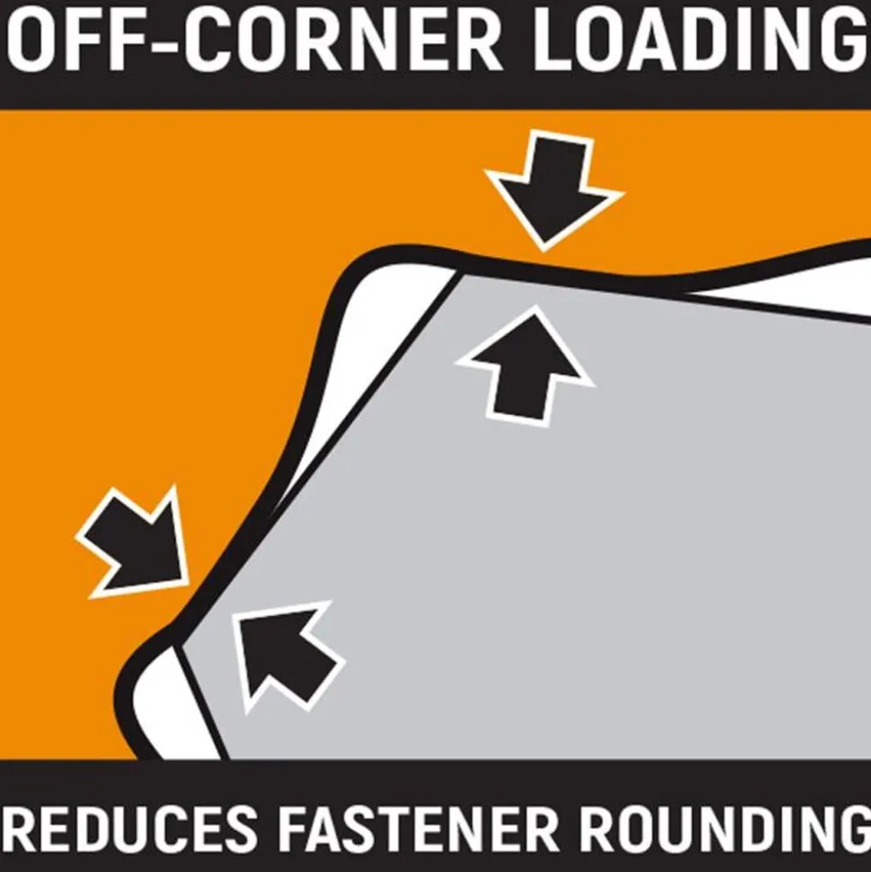 - Off-corner loading design reduces fastener rounding