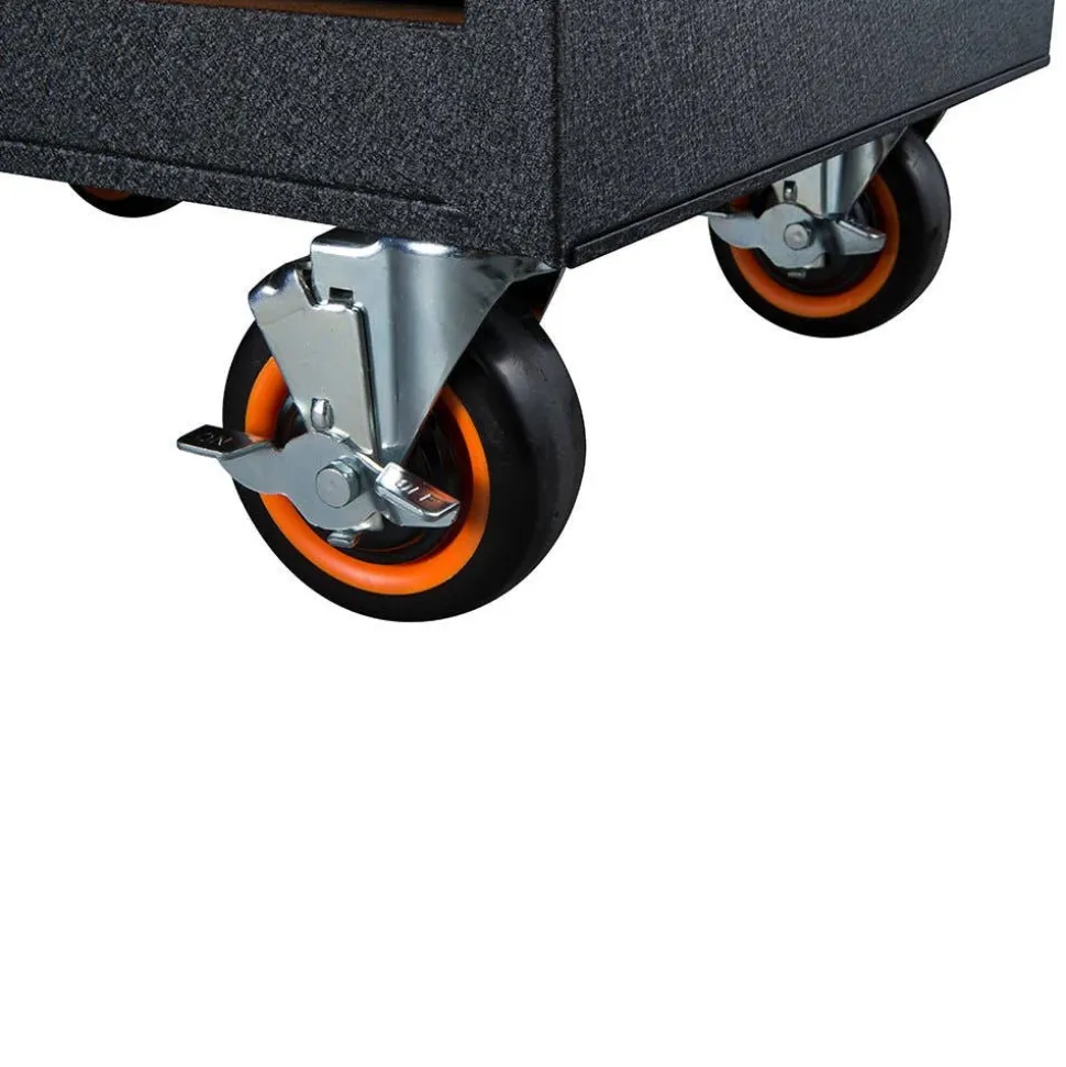 - Heavy duty industrial PP casters with each rated at 450 lbs. with 2 casters fixed; 2 swivel; providing easy mobility of the cabinet.