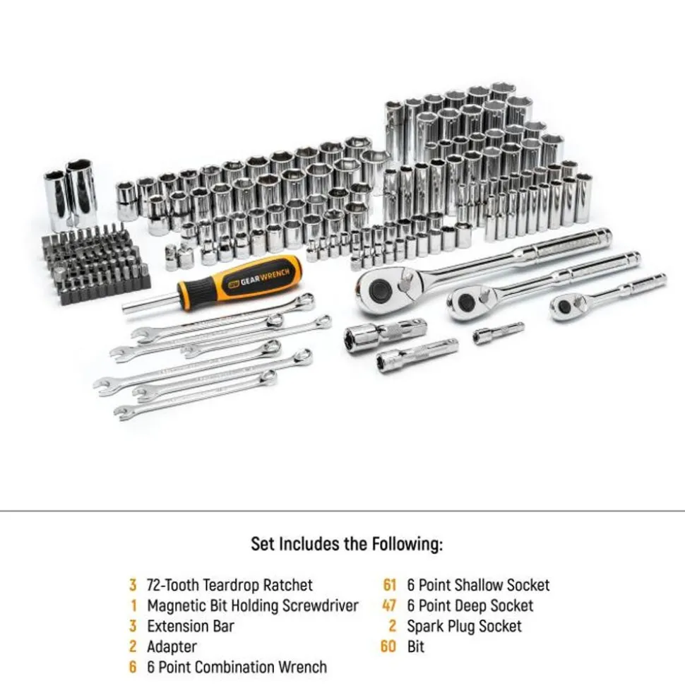 | Size | 1/4″ Shallow: 5/32 in 3/16 in 73/32 in 1/4 in 9/32 in 5/16 in 11/32 in 3/8 in 7/16 in 1/2 in4mm 5mm 5.5mm 6mm 7mm 8mm 9mm 10mm 11mm 12mm 13mm1/4″ Deep: 3/16 in 73/32 in 1/4 in 9/32 in 5/16 in 11/32 in 3/8 in 7/16 in 1/2 in5mm 5.5mm 6mm 7mm 8mm 9mm 10mm 11mm 12mm 13mm3/8″ Shallow: 1/4 in 5/16 in 3/8 in 7/16 in 1/2 in 9/16 in 5/8 in 11/16 in 3/4 in10mm 11mm 12mm 13mm 14mm 15mm 16mm 17mm 18mm 19mm3/8″ Deep: 3/8 in 7/16 in 1/2 in 9/16 in 5/8 in 11/16 in 3/4 in10mm 11mm 12mm 13mm 14mm 15mm 16mm 17mm 18mm 19mm1/2″ Shallow: 7/16 in 1/2 in 9/16 in 5/8 in 11/16 in 3/4 in 13/16 in 7/8 in 15/16 in 1 in13mm 14mm 15mm 16mm 17mm 18mm 19mm 20mm 21mm 22mm 24mm1/2″ Deep: 9/16 in 5/8 in 11/16 in 3/4 in 13/16 in 7/8 in17mm 18mm 19mm 21mm 22mm3/8″ Spark Plug: 5/8 in 13/16 inCombination Wrenches: 5/16″ 3/8″ 7/16″ 8mm 10mm 12mm60 Bits |