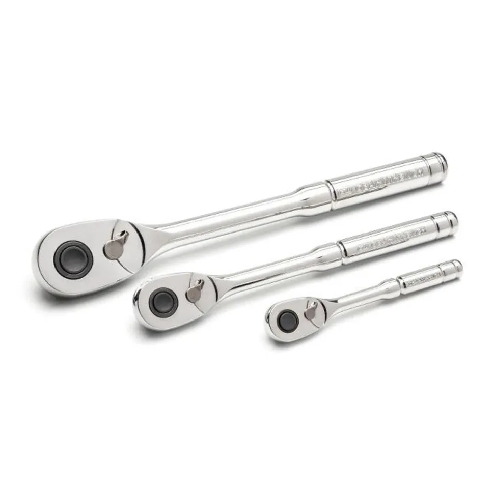 - 72-tooth teardrop shaped head with on/off switch allows more access in tight space