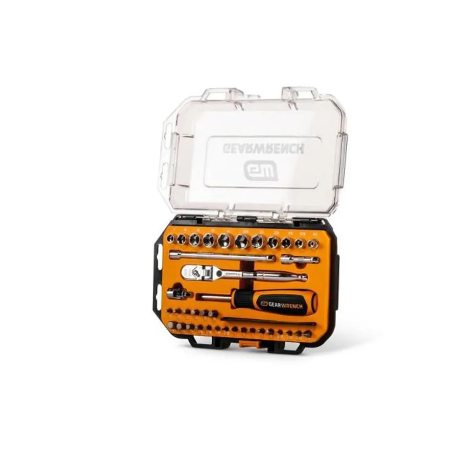 | Size | 120XP Ratchet, Bit Driver, Universal Joint, 2 Extensions, Magnetic StripStubby Sockets (SAE) 9/16”, 1/2”, 7/16”, 3/8”, 5/16”, 1/4″ (Metric) 14mm, 13mm, 12mm, 10mm, 8mm(Hex bits) 3/8”, 5/16”, 1/4”, 3/16”, 5/32”, 1/8”, 3/32”, (Torx bits) T50, T45, T40, T30, T25, T20(Phillips bits) PH4, PH3, PH2 x 2, PH1,(Slotted bits) 5/16”, 9/32”, 7/32”, 5/32” |