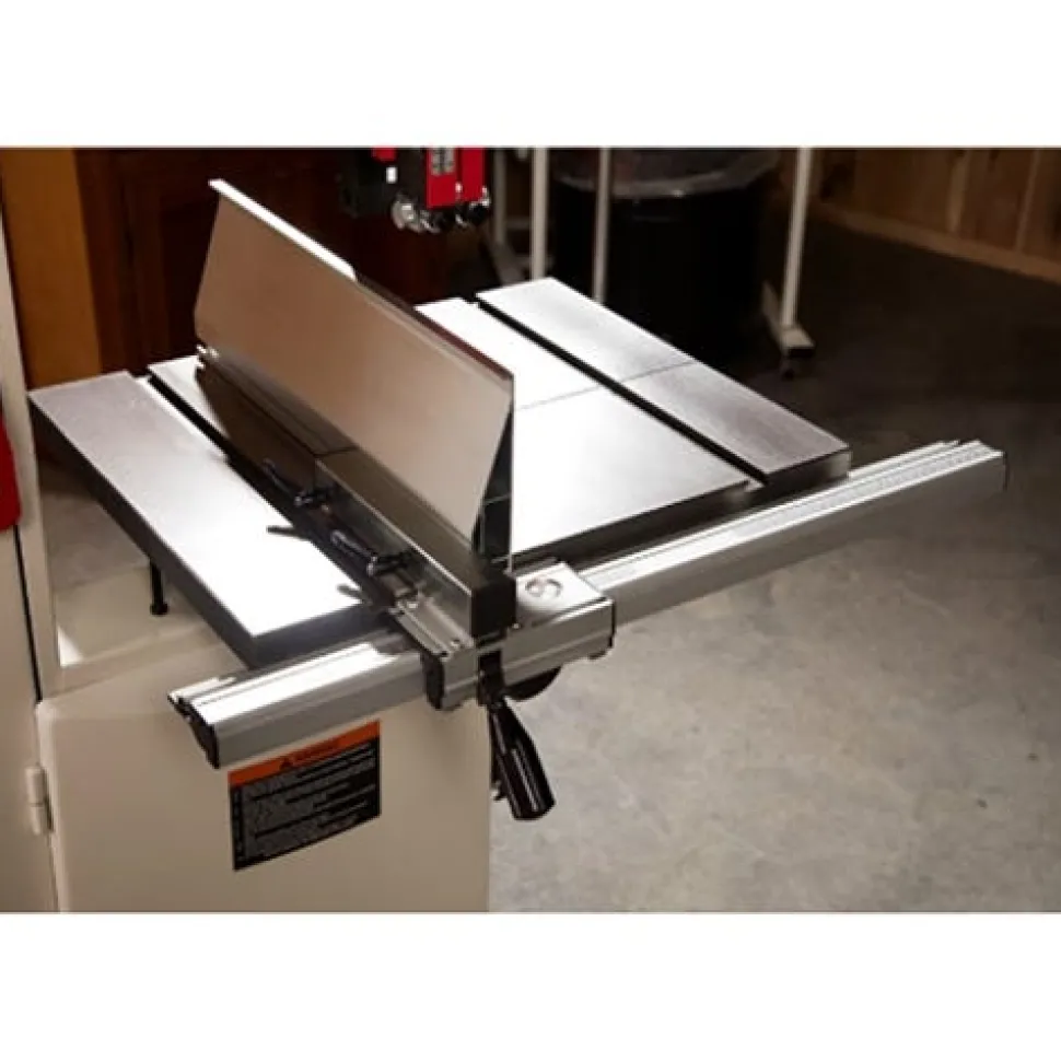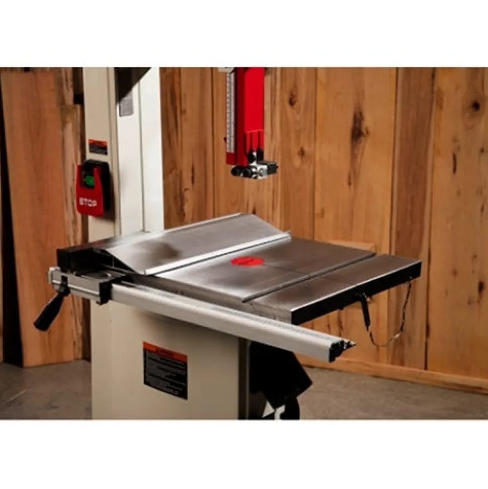 The newest addition to the JET Bandsaw lineup; the JET 14” SFX Steel Frame Bandsaw redefines the line between functionality and affordability. The large; cast iron table features 360 sq. in. of work surface for greater work piece support when making deep cuts. The machined aluminum fence system features easily visible measurements for the most accurate cutting. This saw is equipped with JET’s easily adjustable blade guide system; makes adjustments quick and simple. The JET 14” Bandsaw also features over 13 inches of resaw capacity; and dual 4 inch dust ports for maximum dust collection efficiency. Heavy duty tubular steel welded construction; robust stamped steel doors with welded steel pin hinges; and heavy duty base; allows for stability and durability when sawing large work pieces. The JET 14” SFX Bandsaw provides the woodworker all the premium features of a higher end saw with superior performance to complete any project.