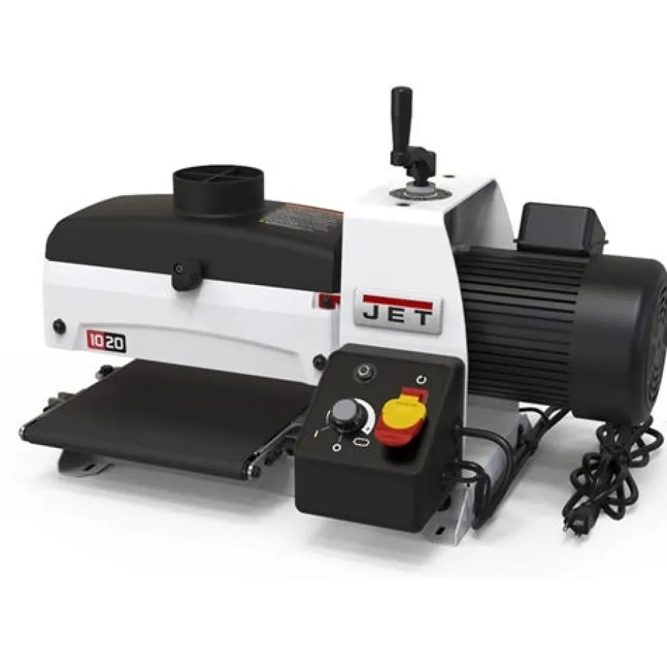 The compact JWDS-1020 benchtop sander from JET packs a powerful 1HP motor that will sand boards up to 3 thick and 20″ wide. The innovative patented dust hood ensures dust is funneled to the 4 inch dust port that easily connects to a Dust Collector. Adjusting the table back to parallel is convenient with just the turn of a dial. The self-cooling extruded aluminum sanding drum protects the sanding surface from heat damage; preventing waste.