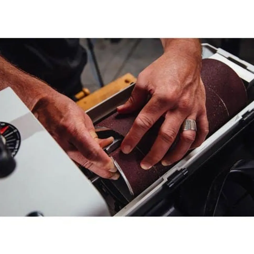 - Toolless abrasive take-up fasteners make changing abrasives quick and easy.