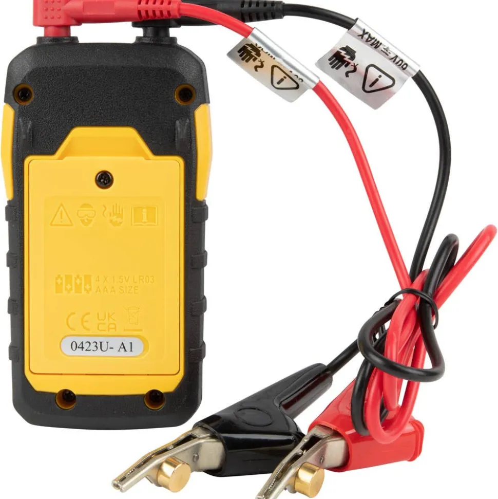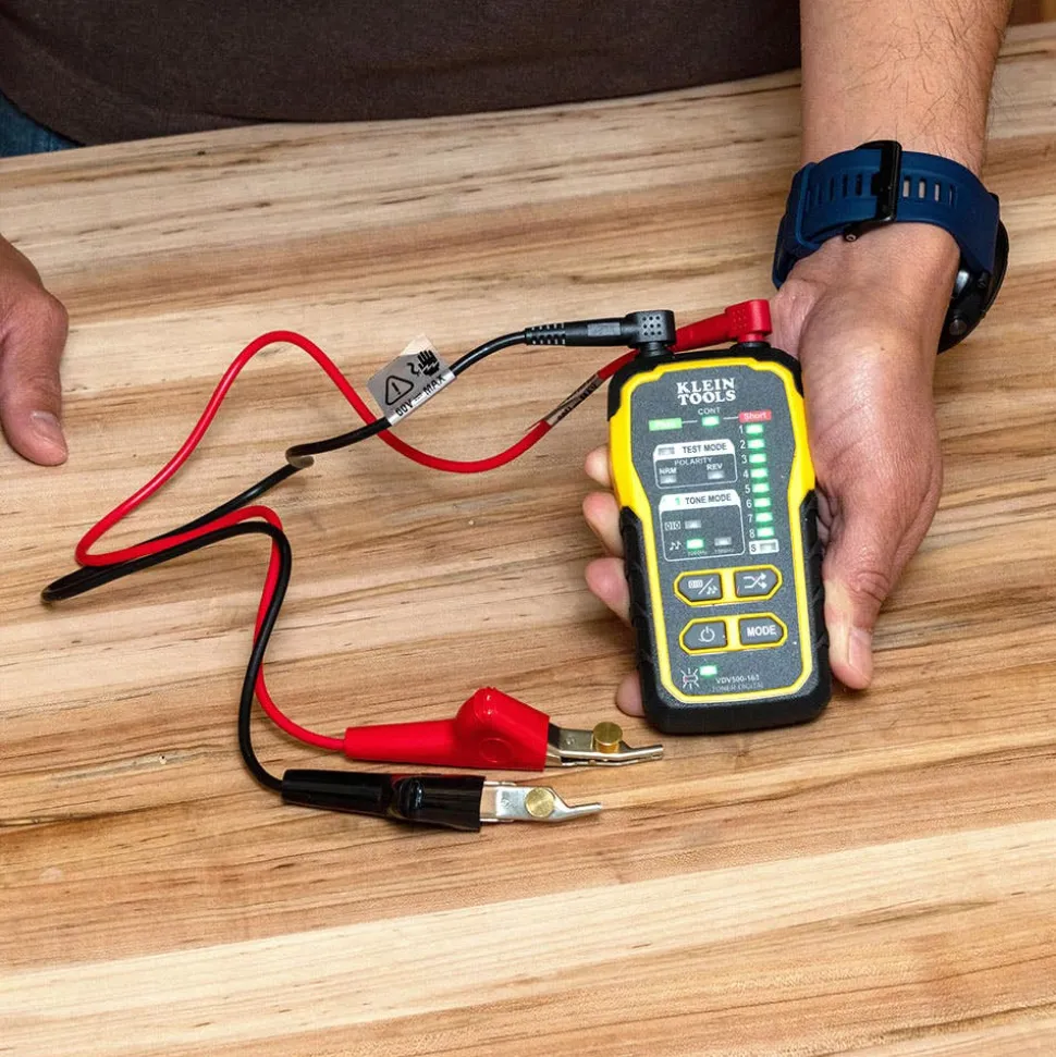 - Tests for continuity and polarity with response displayed on clearly labeled, easy-to-read LEDs