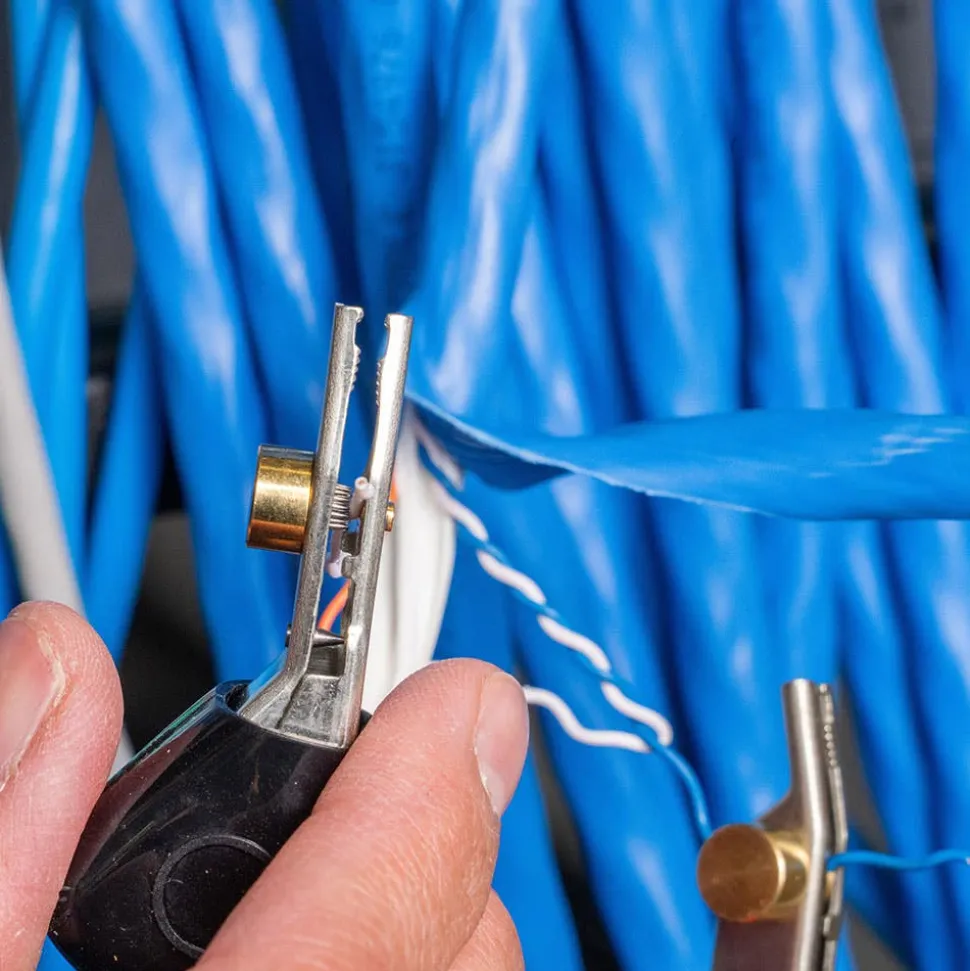 - RJ45 port to test RJ45, RJ11 and RJ12 data cables