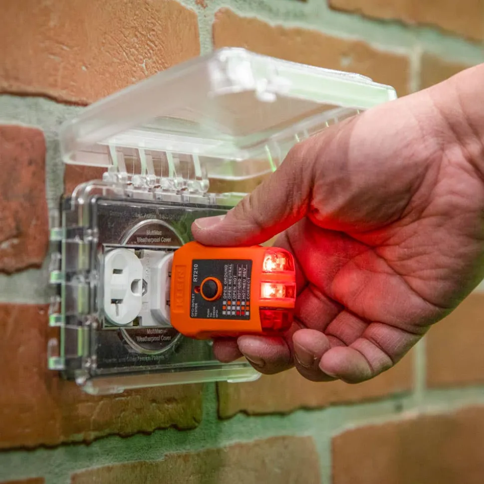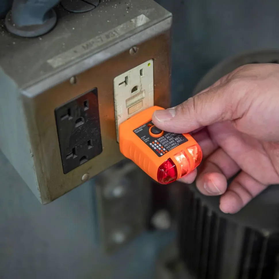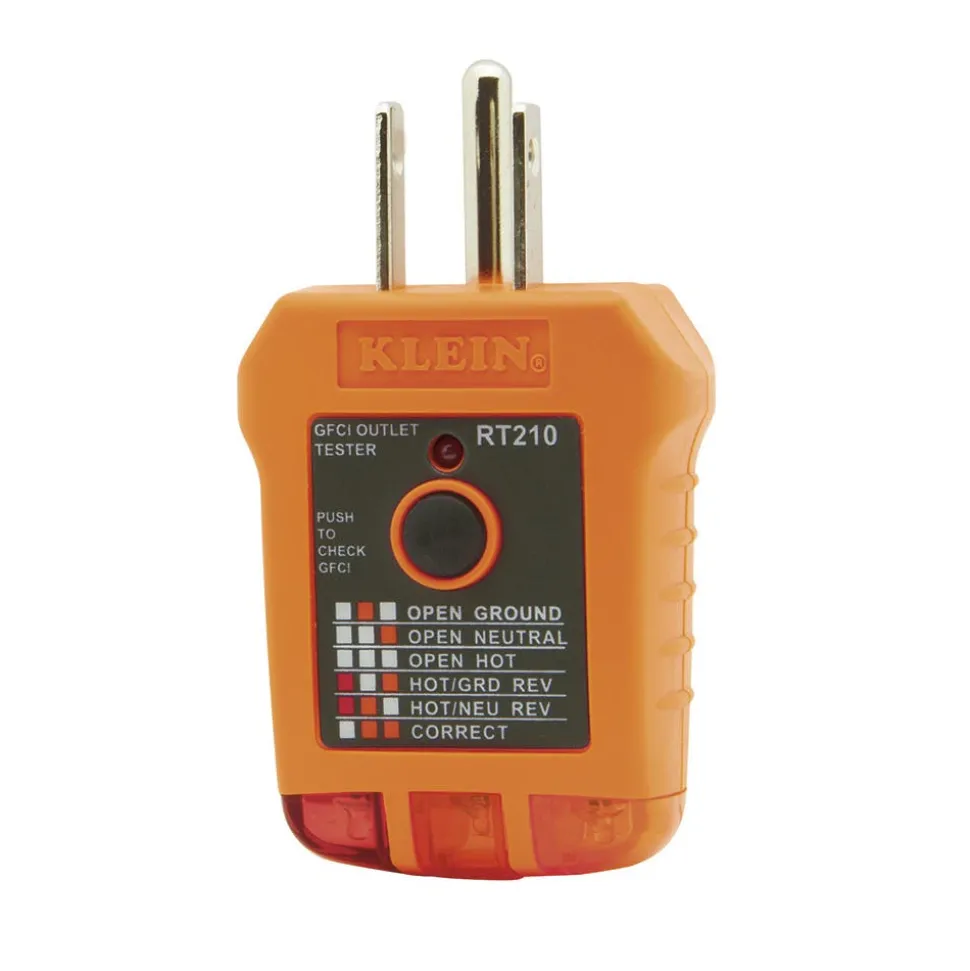 Klein Tools Receptacle Testers are designed to detect the most common wiring problems in standard and GFCI receptacles. A convenient chart on the tester helps determine wiring condition in outlet, based on lights results. Conditions indicated: open ground, reverse polarity, open hot, open neutral, hot/ground reversed.