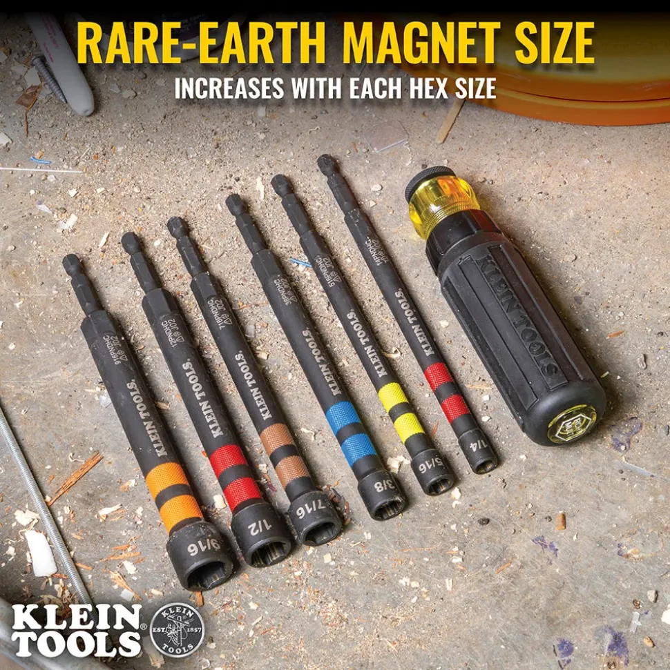 - Magnet size increases with each hex size to hold screws and nuts
