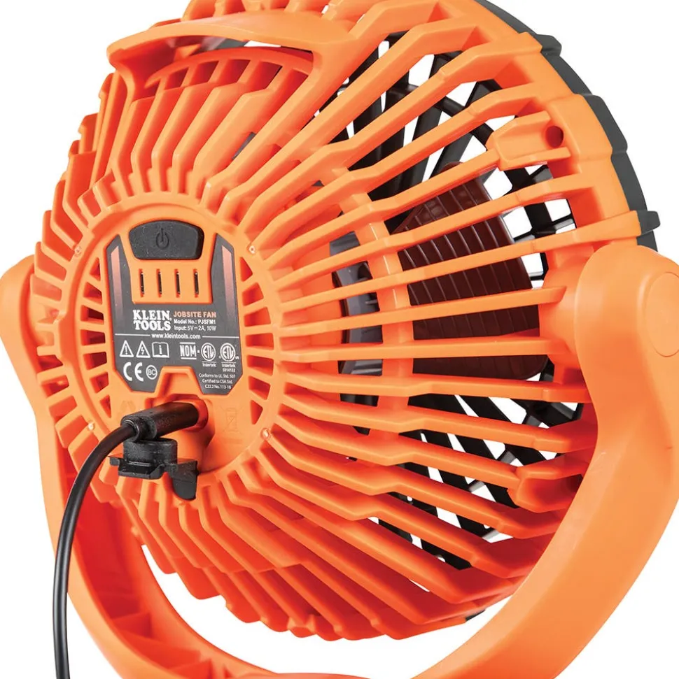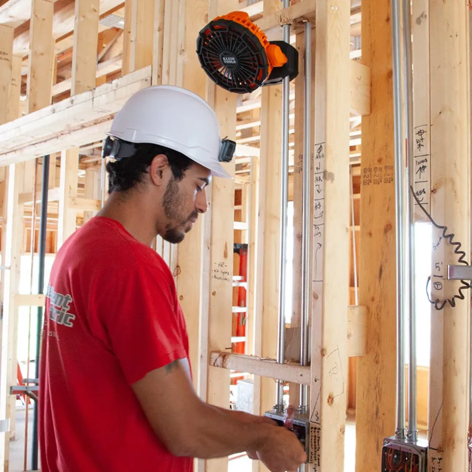 Klein Tools’ personal fan has multiple mounting options keeping the fan off the dirty job site floor. Whether you mount it or simply sit the fan on a flat surface, airflow can be aimed in any direction with a fan cage that both rotates and spins 360 degrees. At 10-1/2-Inch tall, this fan is the ideal size to carry every day while producing powerful flow of air when it’s hot and stuffy on the job.