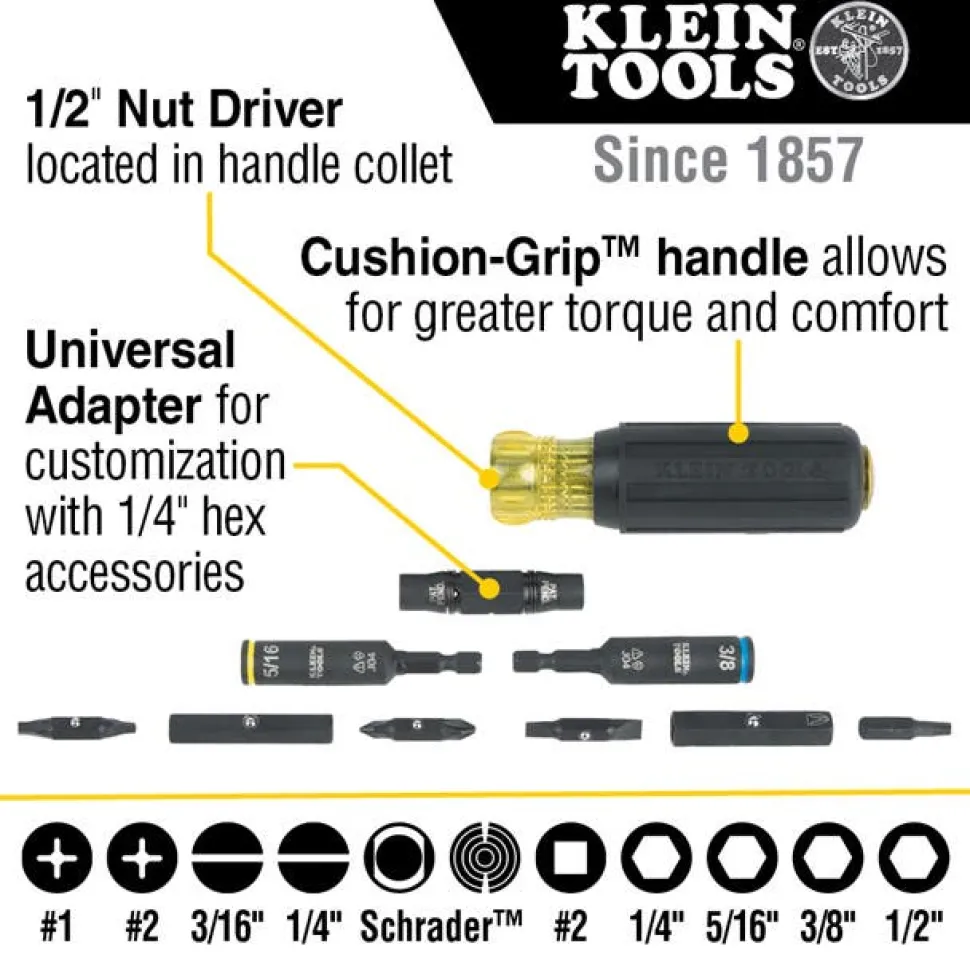 - 11-in-1 Impact rated HVAC multi-bit screwdriver / nut driver can be used interchangeably with a 1/4-Inch impact driver