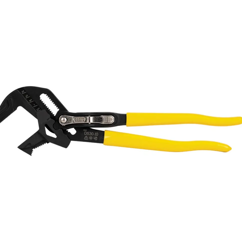 Klein’s Plier Wrench functions as an adjustable wrench on flat-sided fasteners as well a pump plier for pipe and other round objects. Its reversible jaw provides smooth parallel jaws characteristics of traditional plier wrenches, with the added versatility of knurled teeth on the reverse side when extra bite is needed, as well as unique and efficient adjustment.