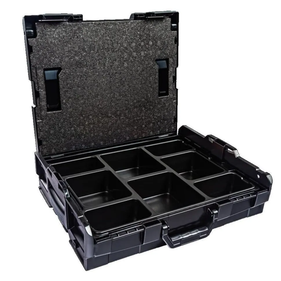 - The screwable lid insert made from rigid foam prevents the contents of the inset boxes or small parts inserts being unintentionally mixed-up during transport