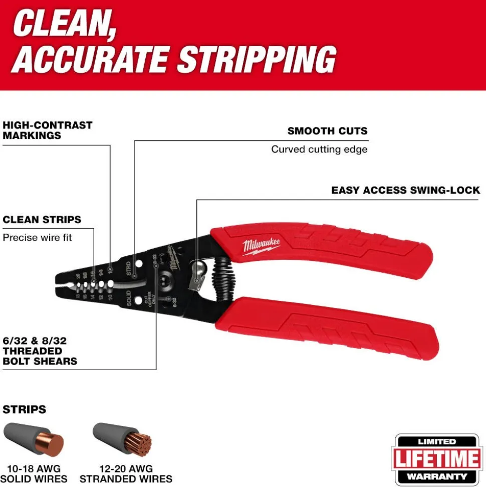 - Strips 10-18 Solid and 12-20 Stranded AWG Wire