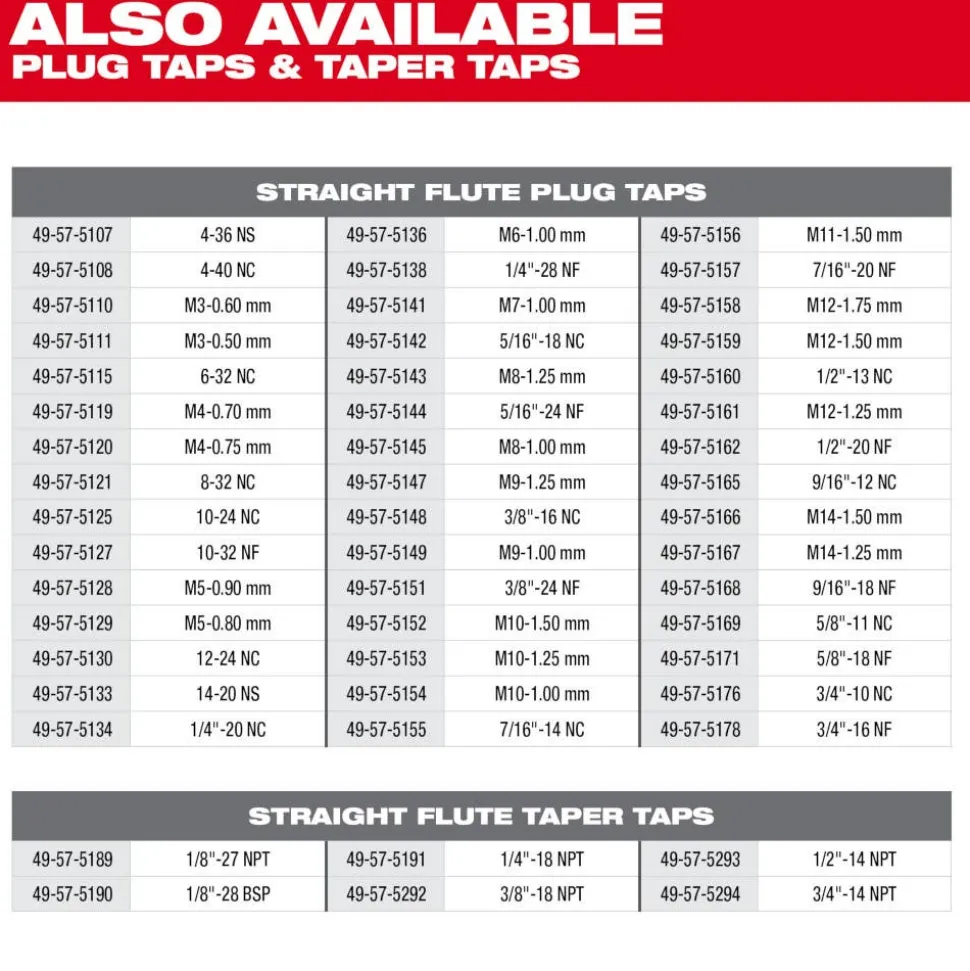 - Straight flute tap style designed for the most common threading applications