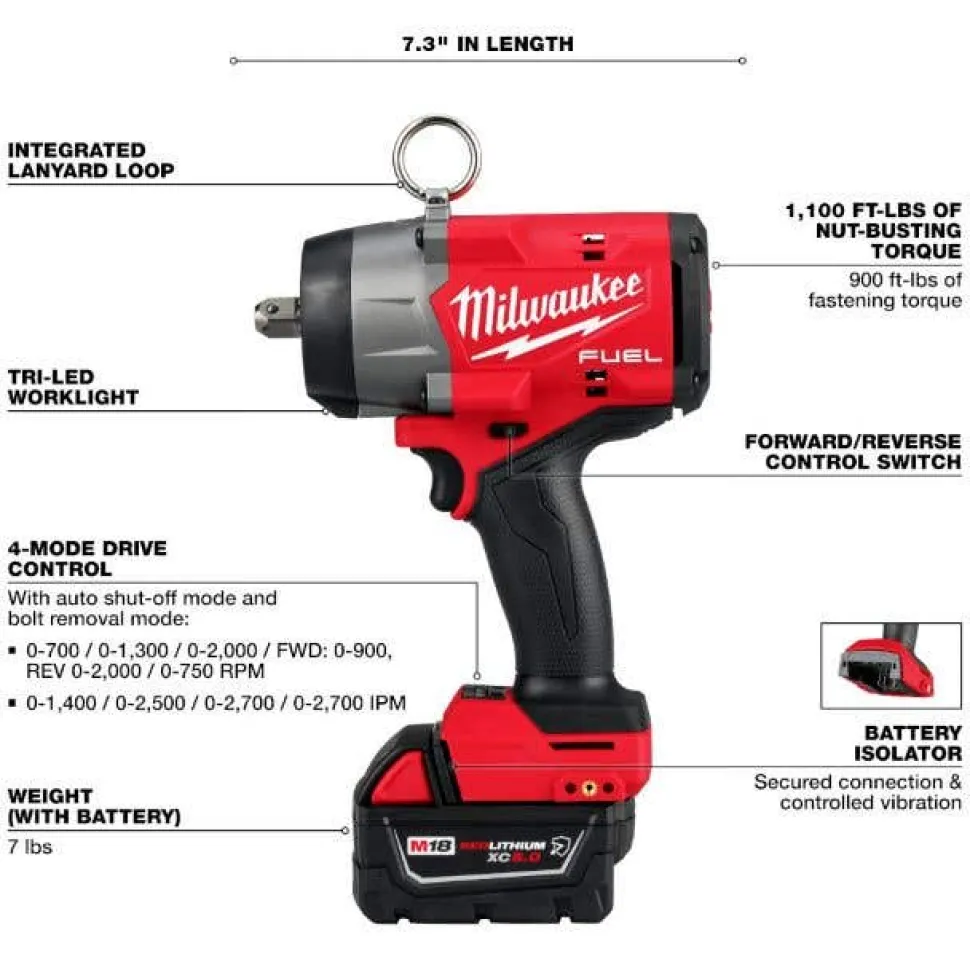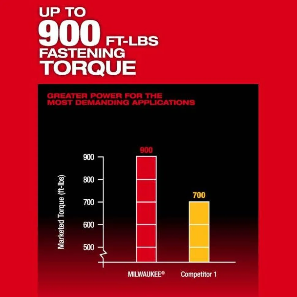 - POWERSTATE Brushless Motor delivers up to 900 ft-lbs of Fastening Torque & 1,100 ft-lbs of Nut-Busting Torque