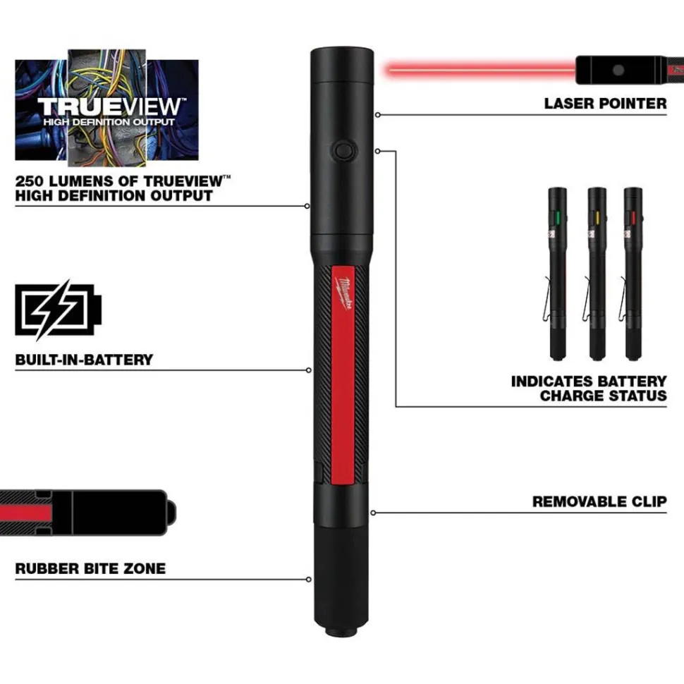 | Package Contents | (1) Milwaukee Rechargeable 250L Penlight w/ Laser (2010), (1) 2 foot Heavy Duty Cable |