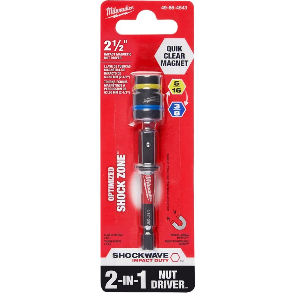 - (1) 5/16″ and 3/8″ x 2-1/2″ QUIK-CLEAR 2-in-1 Magnetic Nut Driver