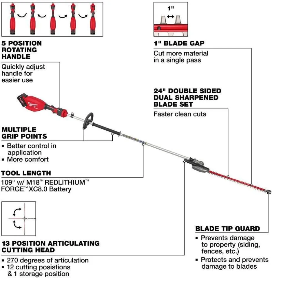 - (1) M18 FUELâ„¢ Extended Pole Articulating Hedge Trimmer (3035-20)