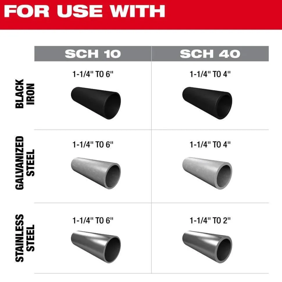 - Grooves 1-1/4” – 6” Sch 10, 1-1/4” – 4” Sch 40