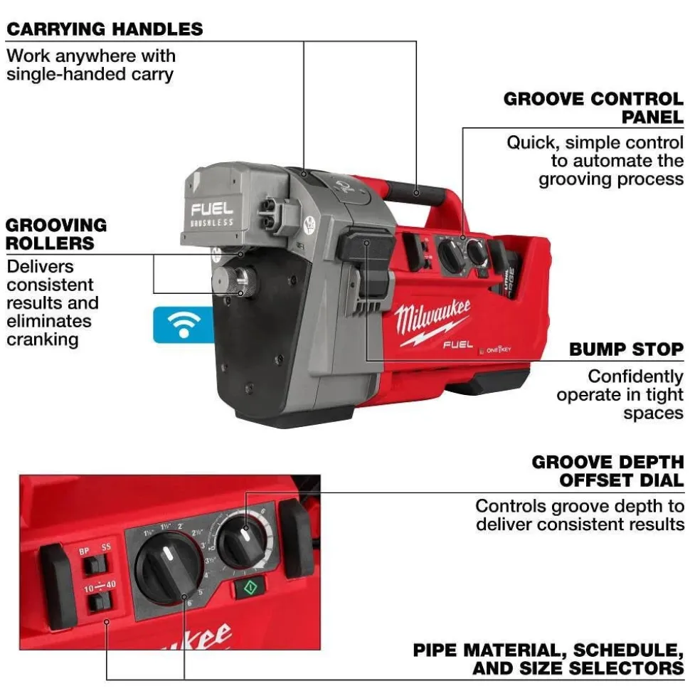 - Up to 50 2.5″ Sch 10 Grooves Per Charge
