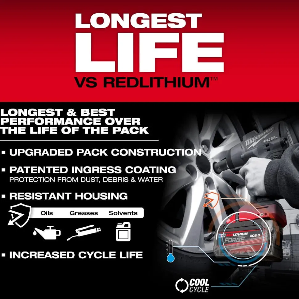 - REDLITHIUM FORGE provides the most powerful, fastest charging, and longest life batteries within REDLITHIUM