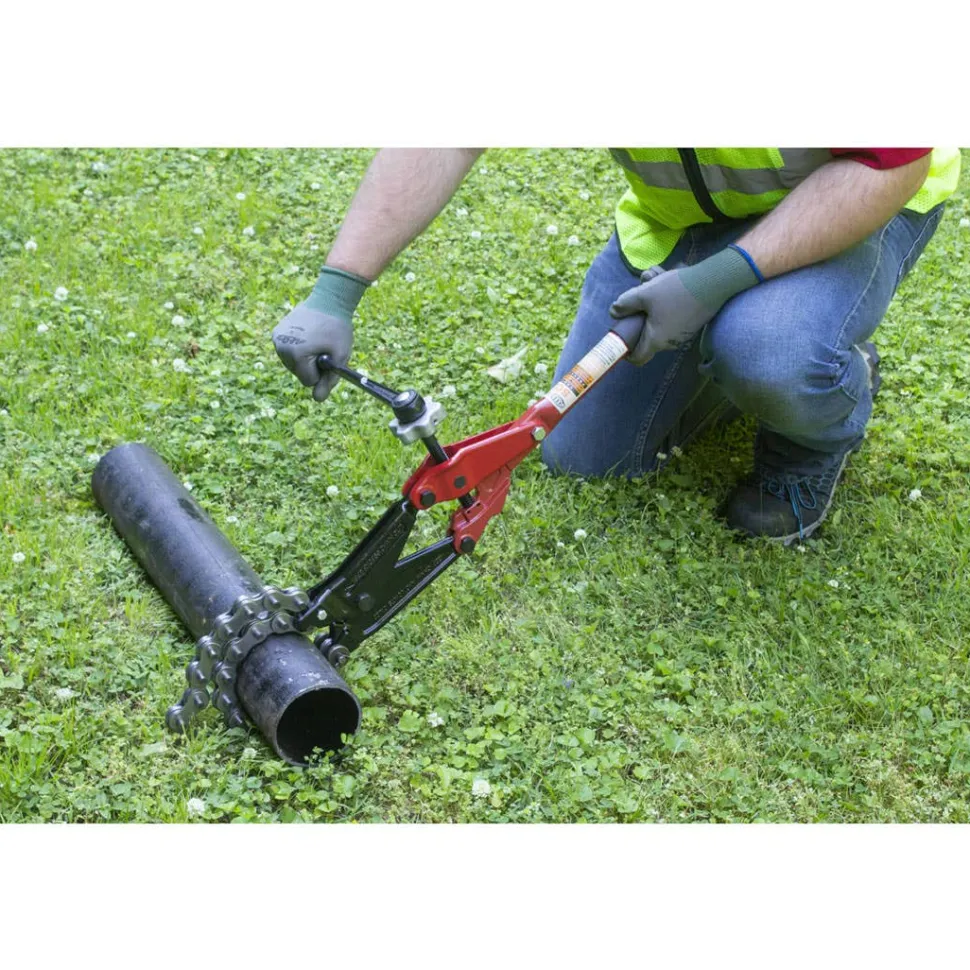 - Soil Pipe Cutters apply chain pressure to snap the pipe.